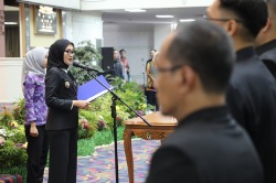 Cyberondonesia.net – Wakil Gubernur (Wagub) Lampung Jihan Nurlela melantik dan mengambil sumpah/janji jabatan 6 pejabat administrator dan 44 pejabat pengawas di Lingkungan Pemerintah Provinsi Lampung, di Gedung Balai Keratun, Komplek Kantor Gubernur Lampung, Jum’at (2/5/2025).