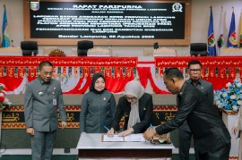 Penandatanganan tersebut dilakukan oleh Wakil Gubernur Lampung Jihan Nurlela dan Wakil Ketua I DPRD Provinsi Lampung Kostiana dalam Rapat Paripurna Lanjutan yang berlangsung di Ruang Sidang DPRD Provinsi Lampung, Jumat, 8 Agustus 2025.