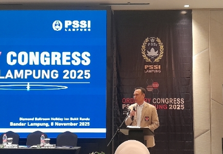 Cyberindonesia.net – Ketua Umum (Ketum) Komite Olahraga Nasional Indonesia (KONI) Ptovinsi Lampung Taufik Hidayat, membuka Kongres Biasa (Ordinary Congress) Asosiasi Privinsi (Asprov) Persatuan Sepakbola Seluruh Indonesia (PSSI) Lampung, di Ballroom Holiday Inn Randu Hotel Bandar Lampung, Sabtu, 8 November 2025.