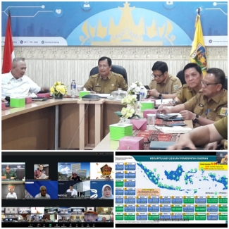 Staf Ahli Gubernur bidang Ekonomi, Keuangan, dan Pembangunan Bani Ispriyanto, mengikuti Rakor dari Ruang Command Center Lt. II Dinas Kominfotik Provinsi Lampung.