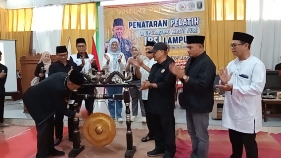 Selanjutnya, Ketum KONI Lampung membuka pelatihan, dengan memukul gong didampingi Wakil Ketua Umum I IPSI) Lampung Wahrul Fauzi Silalahi, dan Sekretais Umum IPSI Lampung Riagus Ria.
