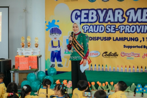 Dalam sambutannya, Batin Wulan, sapaan akrab Bunda PAUD Lampung menyampaikan rasa bangga dan bahagia dapat bertemu langsung dengan anak-anak PAUD yang datang dari berbagai daerah, seperti Mesuji, Metro, Pringsewu, Bandar Lampung, hingga Bandar Jaya.