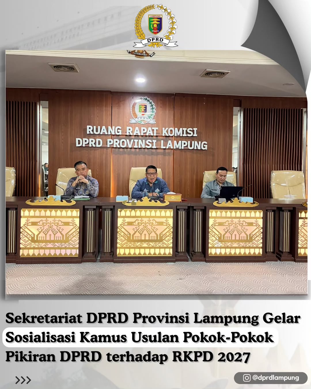Bandar Lampung,-Sekretariat DPRD Provinsi Lampung menggelar Sosialisasi Kamus Usulan Pokok-Pokok Pikiran (Pokir) DPRD terhadap Rencana Kerja Pemerintah Daerah (RKPD) Tahun 2027. Kegiatan yang diinisiasi oleh Bagian Aspirasi, Humas, dan Protokol Sekretariat DPRD Provinsi Lampung ini dilaksanakan di Ruang Rapat Komisi pada Jumat (13/2/2026).