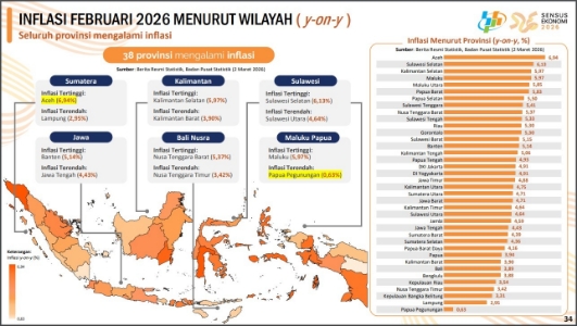 Adapun Inflasi nasional secara tahunan (year on year/y-o-y) pada Februari 2026 tercatat sebesar 4,76%. Pada periode yang sama, inflasi tahunan Provinsi Lampung sebesar 2,95%, menjadi yang terendah di Sumatera dan terendah kedua secara nasional.
