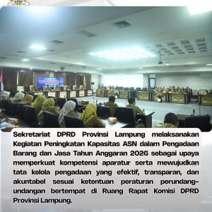 Sekretariat DPRD Lampung Tingkatkan Kapasitas ASN dalam Pengadaan Barang dan Jasa TA 2026 DPRD 1|03/02/2026oleh Cyber Indonesia Bandar Lampung,-Sekretariat DPRD Provinsi Lampung melaksanakan Kegiatan Peningkatan Kapasitas ASN dalam Pengadaan