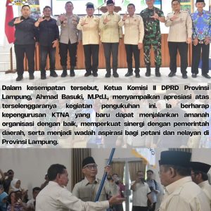Ketua Komisi II DPRD Lampung Hadiri Pengukuhan Pengurus KTNA Provinsi Lampung DPRD 1|31/01/2026oleh Cyber Indonesia Bandar Lampung,-Ketua Komisi II DPRD Provinsi Lampung, Ahmad Basuki, M.Pd.I., mewakili Ketua